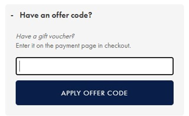 - You will then be able to see if any offers have been applied. If, for any reason, the offer hasn't been applied, you can expand the 'have an offer code?' box, and then you can manually enter the code from your email into the box below: